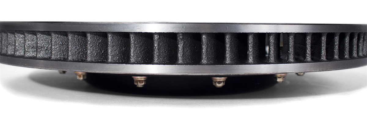 Below is a comparison of a one-piece OEM pillar vane disc and an AP Racing two-piece J Hook. A few things to note in these pictures: The AP Racing disc has a much wider air gap between the disc faces, allowing considerably more airflow into and through the disc. The uniform, directional vane design also contributes heavily to superior airflow.