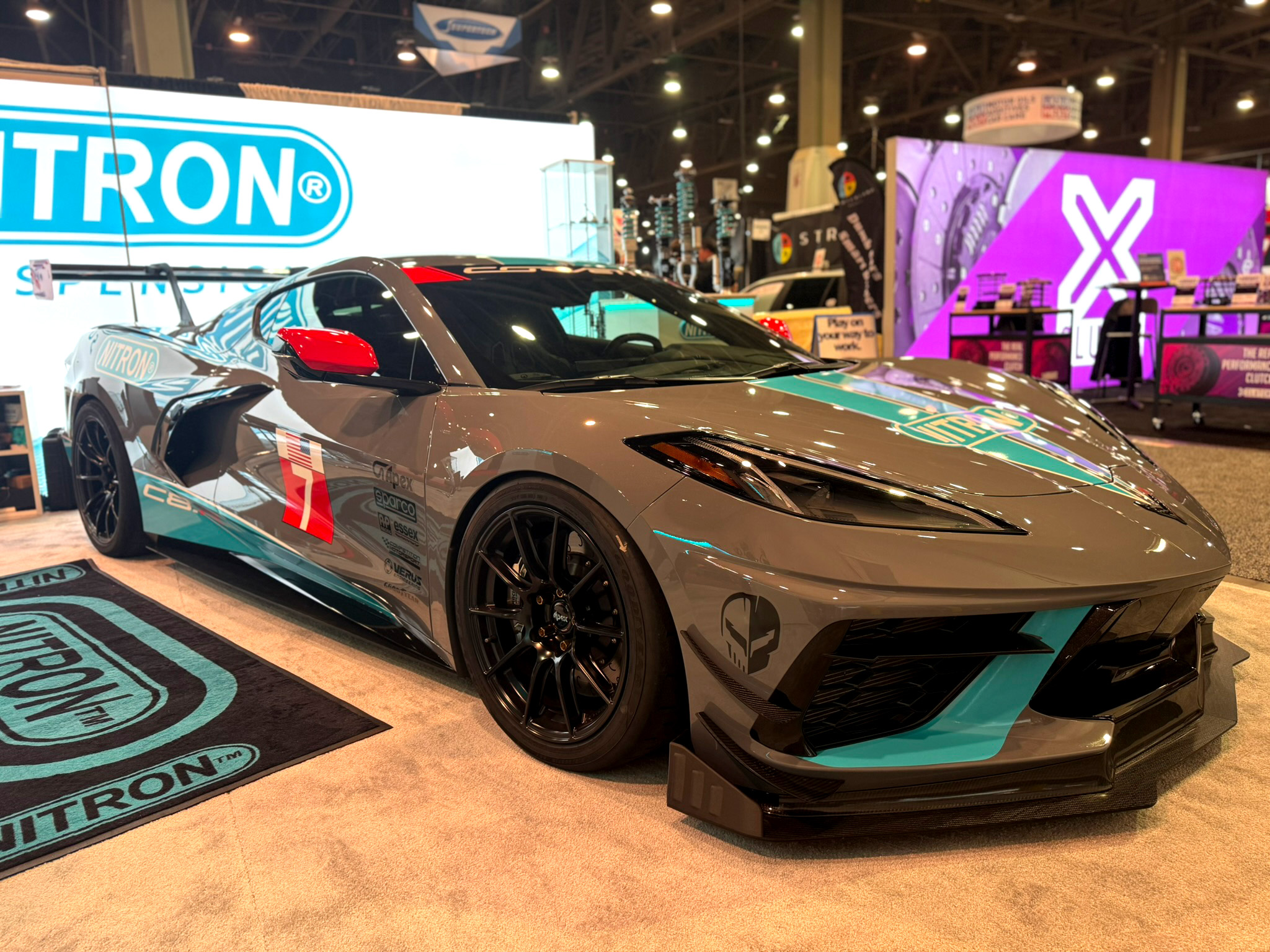 Nitron suspension had this stunning C8 Corvette on display, featuring our AP Racing by Essex Competition Brake Kits (CP9668 front / CP9661 rear) in the Electroless Nickel Plated finish.