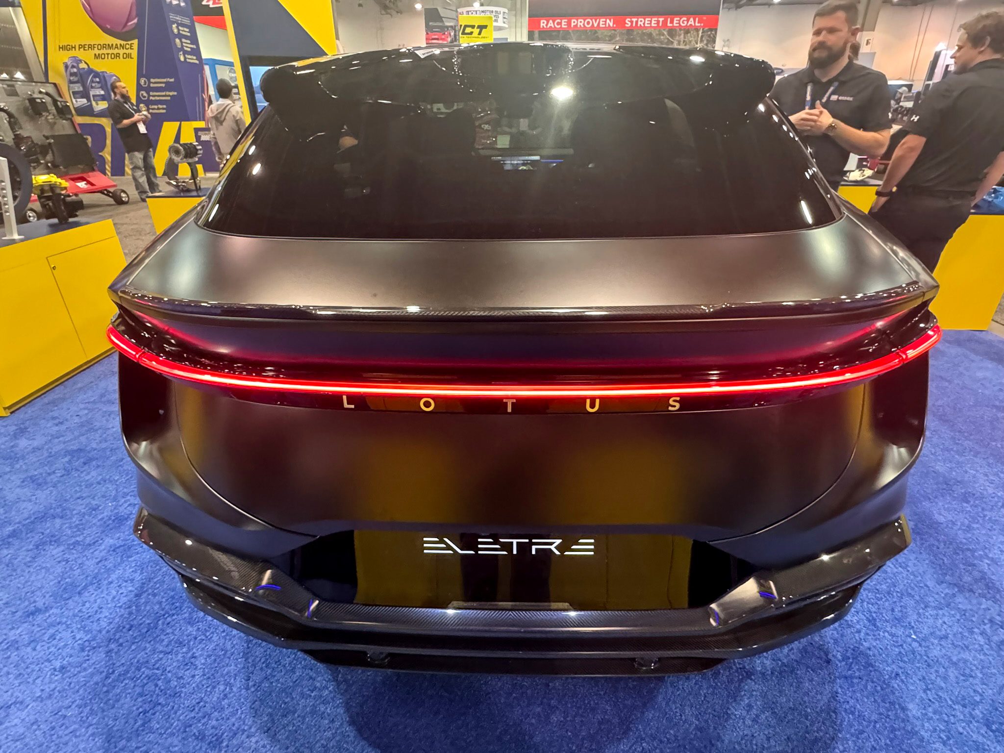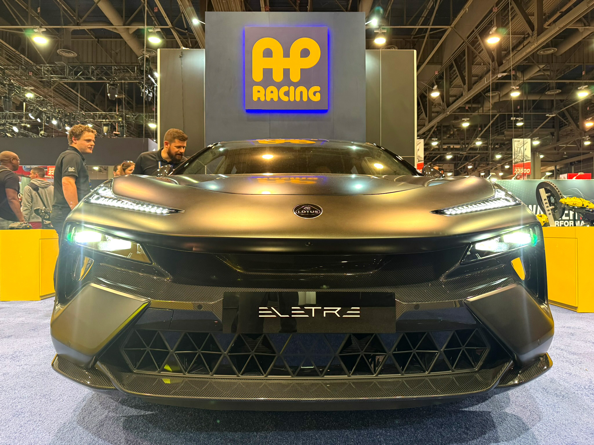 With a menacing flat black paint finish and aggressive styling, the unique Eletre was a popular attraction at the AP Racing booth this year.