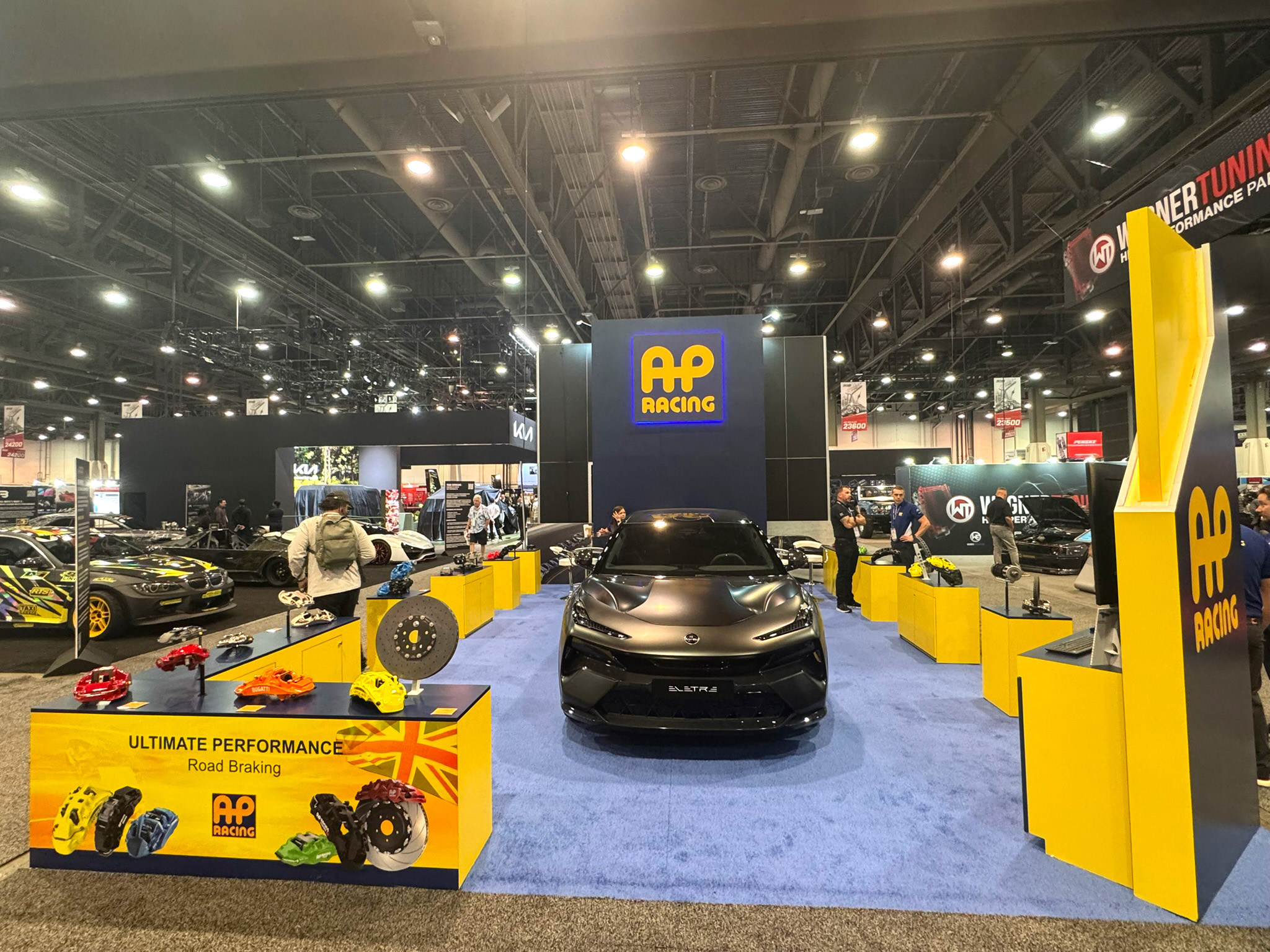 12.04.2024The 2024 SEMA Show is in the books, and what an event it was! We joined the crew from AP Racing in Central Hall again this year, and it was a very busy week meeting with hundreds of visitors who stopped by the booth, including many of our customers and dealers. AP Racing had several of their top-tier motorsport and OE (Original Equipment) brake offerings on display, including those on the groundbreaking new electric SUV from Lotus: the Eletre Carbon.