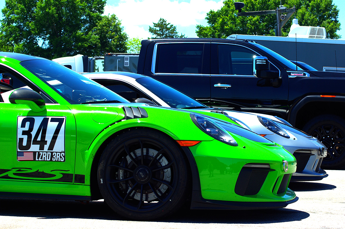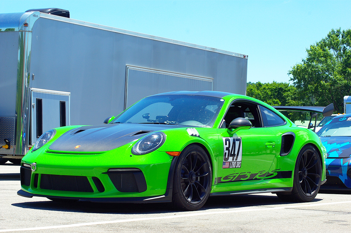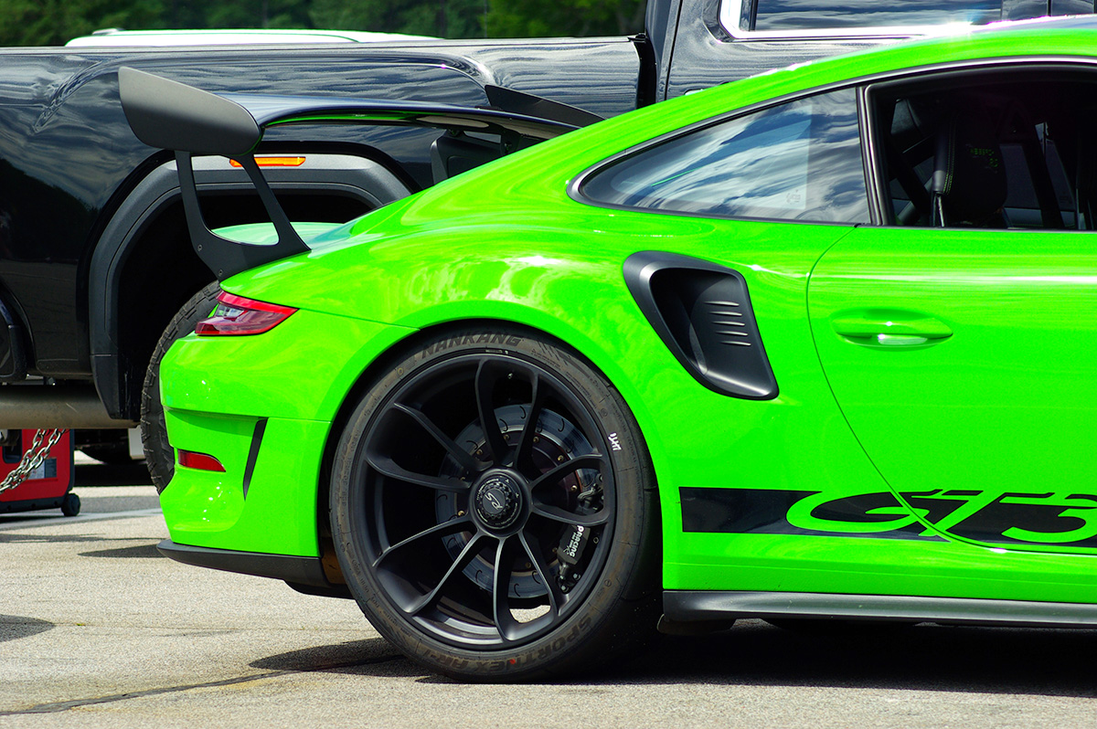 Even with a verdant summertime landscape all around, it's hard to miss a Lizard Green Porsche 991 GT3 RS! This one was attacking the course with our Radi-CAL Competition Brake kits, with CP9661 calipers at the front and CP9449 on the rear axle.
