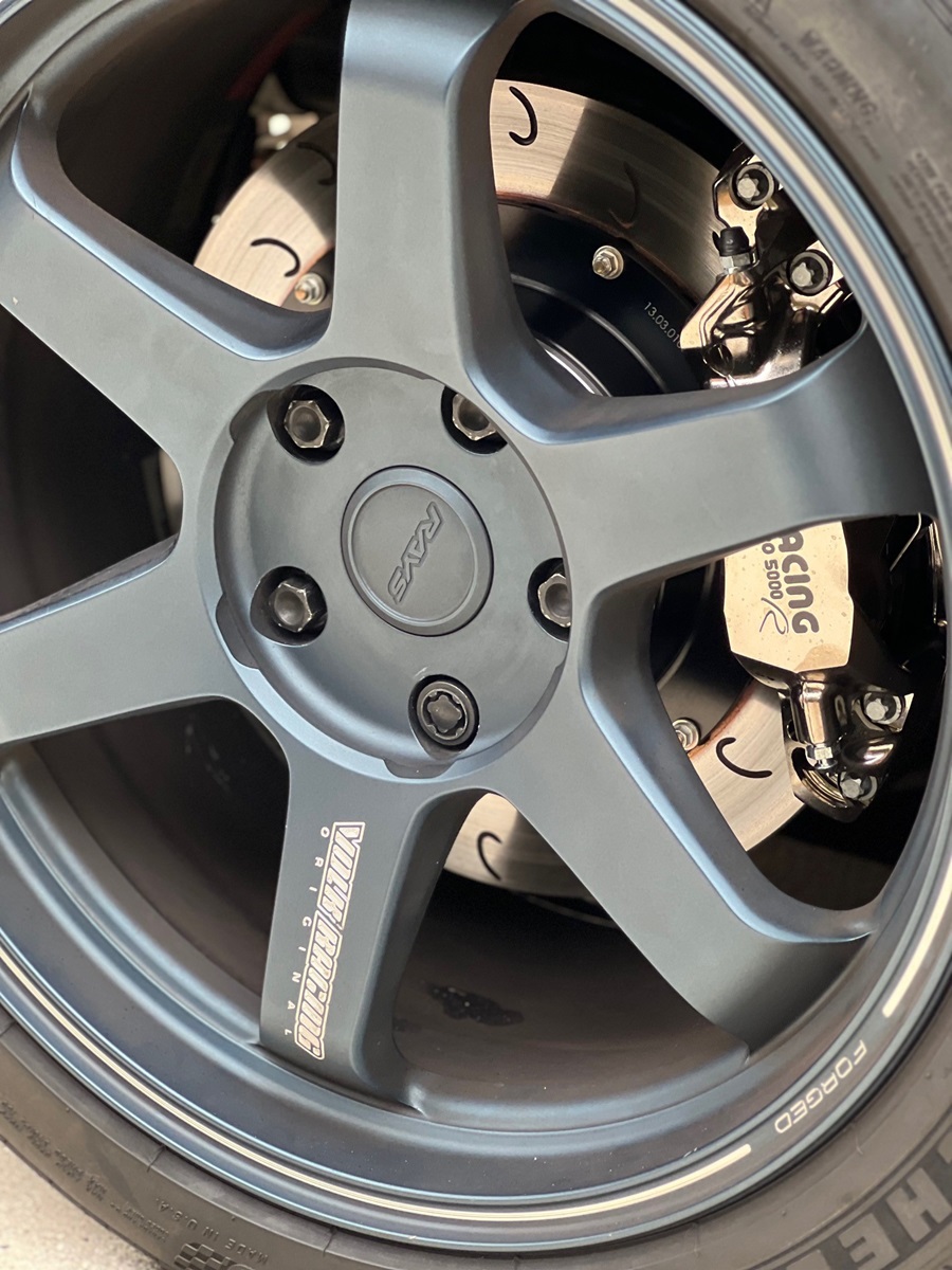 10mm spacer and extended lugs from Porsche were installed. Not for caliper clearance but for specific alignment specs.