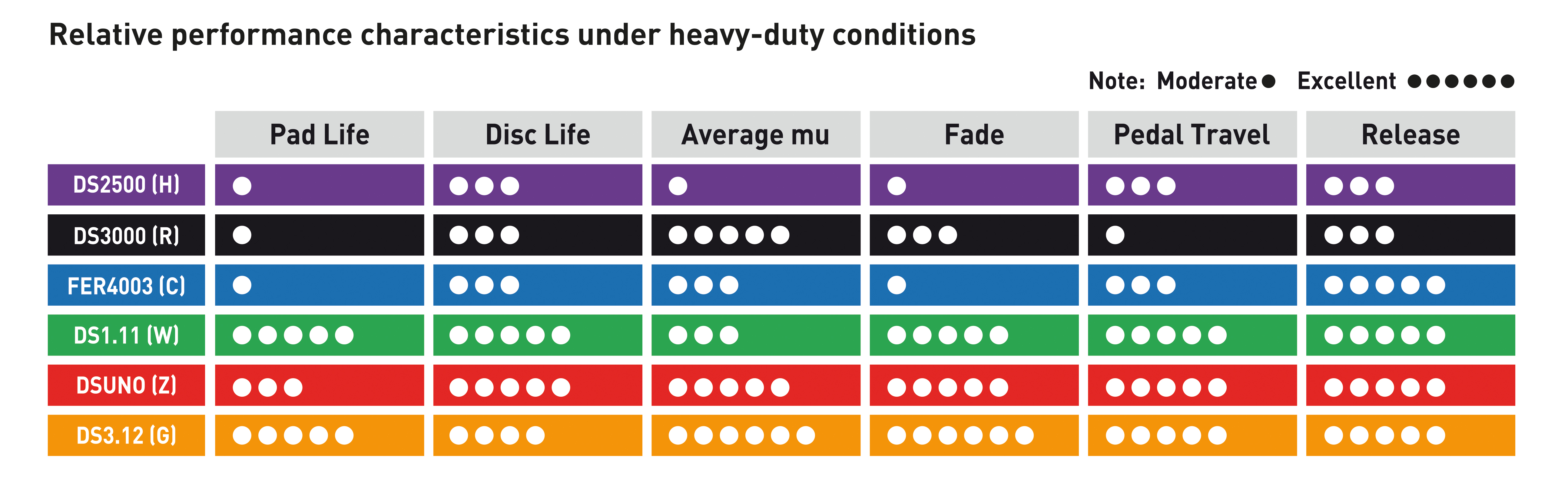 Although we always recommend using a dedicated race pad for the track, the DS2500 is one of the best hybrid street/track pads on the market. It features the moderately high bite and solid fade resistance of a track pad, with the relatively low dust and noise levels of a street pad. When used as a street pad, it can produce some squeal on certain vehicle platforms. During aggressive driving the DS2500 is known for its flat torque curve, which means as temperatures go up, the response through the brake pedal remains consistent. If you drive aggressively on the street, do some canyon runs, autocross, and maybe some light track duty on street tires, the DS2500 is tough to beat.