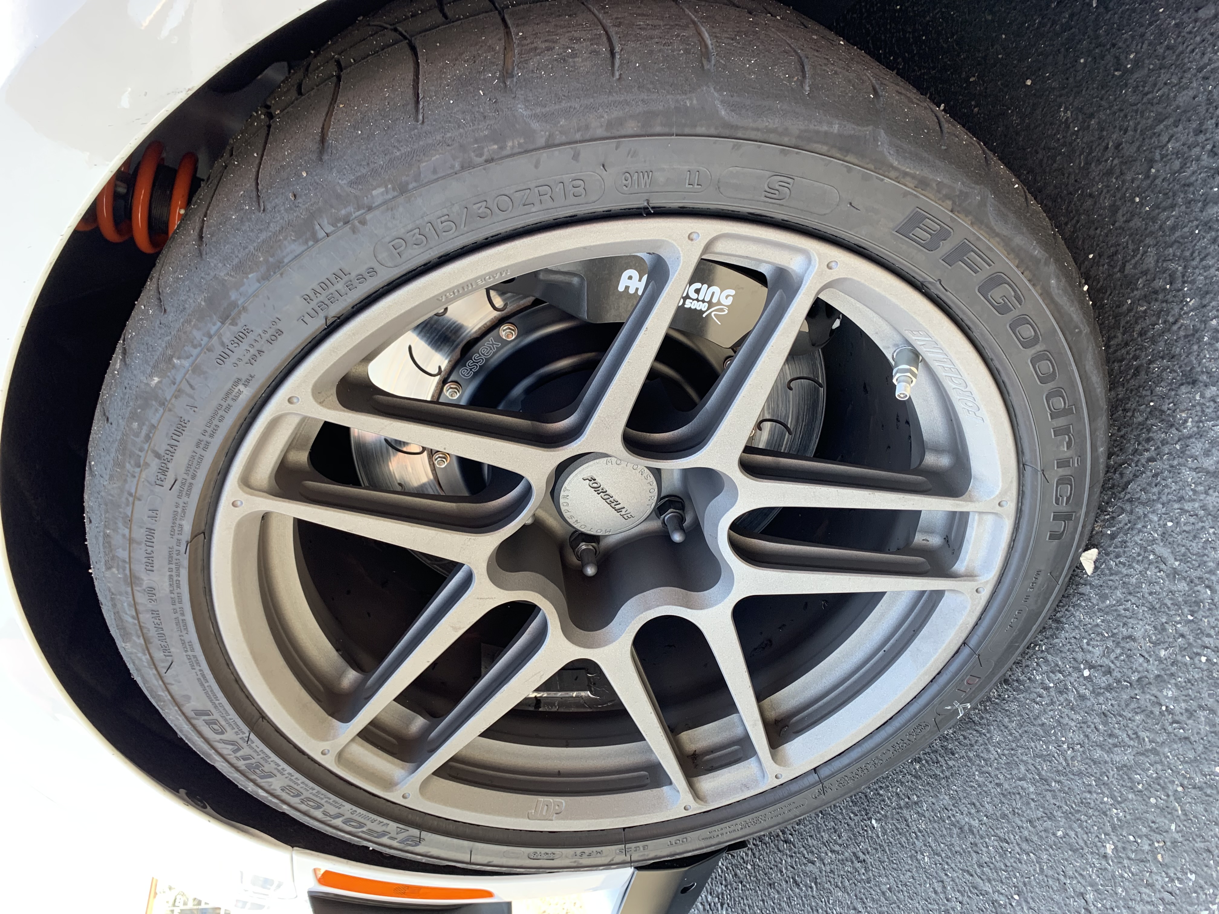 Having the smallest, lightest wheel available offers great advantages in terms of unsprung weight savings, while many times also improving tire selection. However, smaller wheels will constrain the size of the brake package you can fit behind them. If you want to run 18” wheels, our brake kits featuring 372x34mm discs are in almost all cases the largest that can be crammed behind them.
