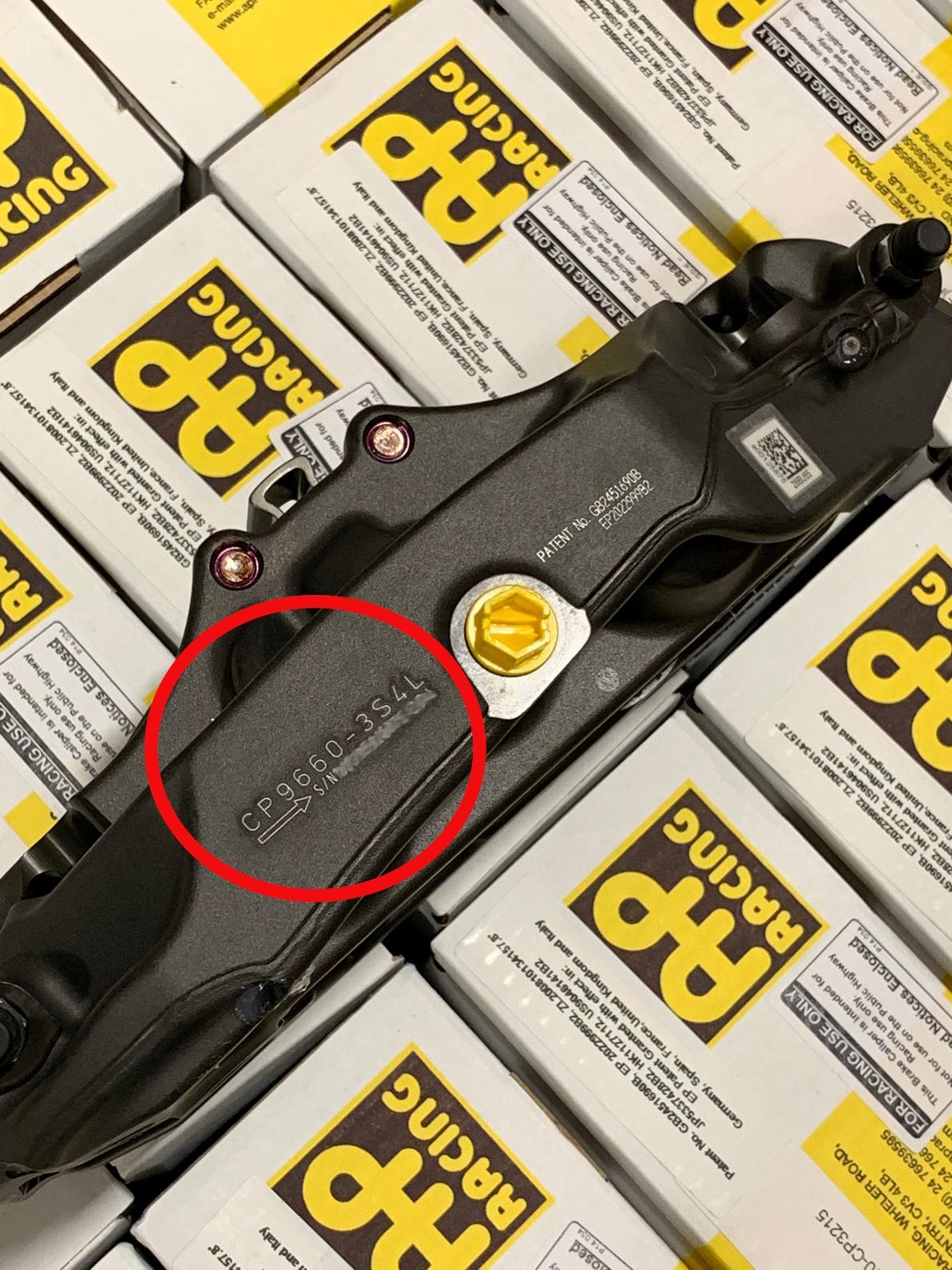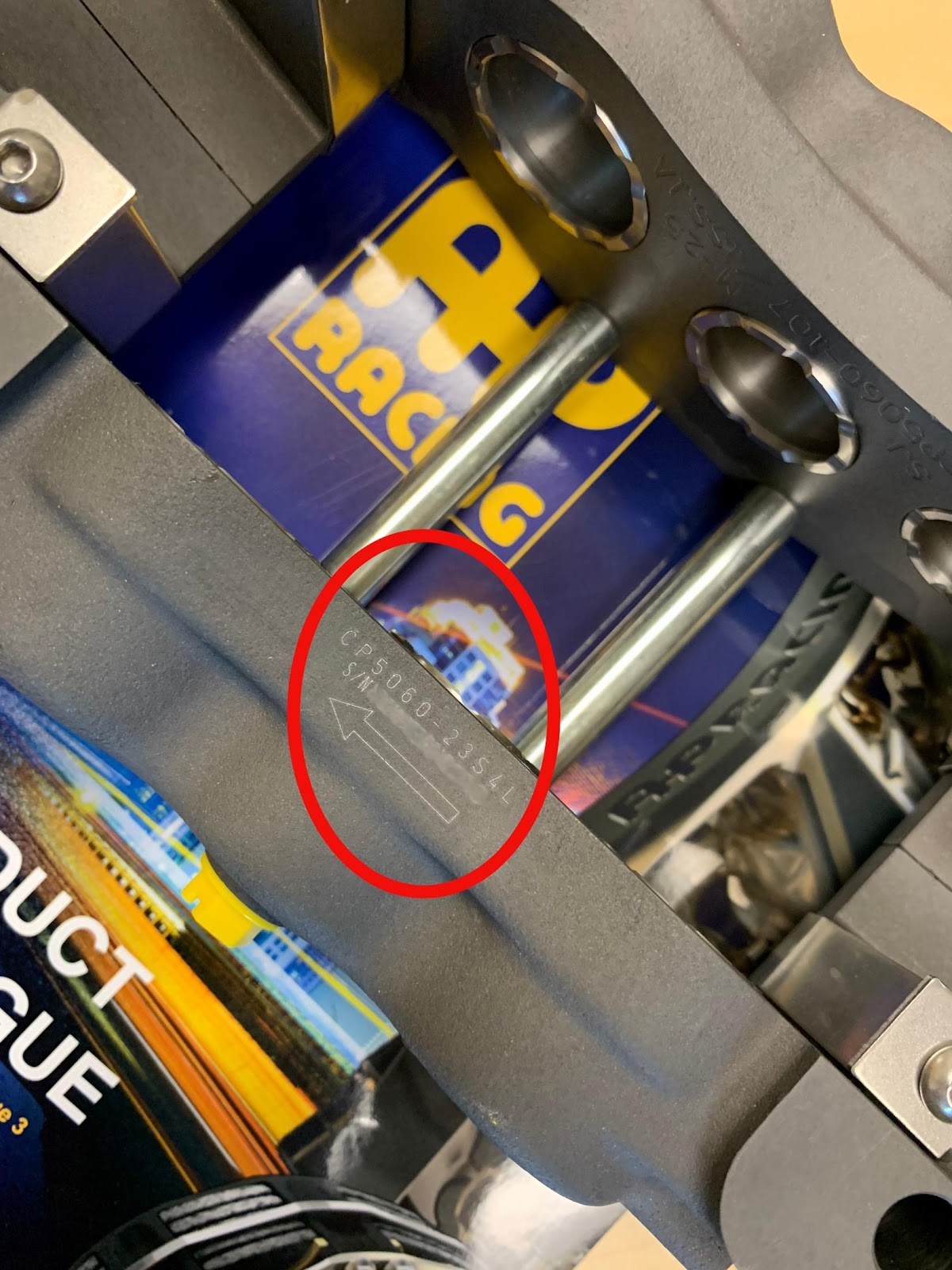 Let’s look at an example to ensure clarity. The complete part number for the caliper in the image below is CP5060-23S4L. Below the caliper part number is this specific caliper’s serial number. If you look near the pistons in the top of the pic, there’s another number starting with CP5060. That is the casting or forging number for the caliper body, but it is NOT this specific caliper’s complete part number. Please note that the caliper body’s broader casting or forging number could be in other locations on the caliper body, such as near the inlet port.