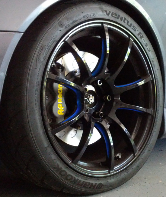 Electroless Nickel Plated Pro5000R calipers with blacked-out paint and wheels make for a sinister combo.