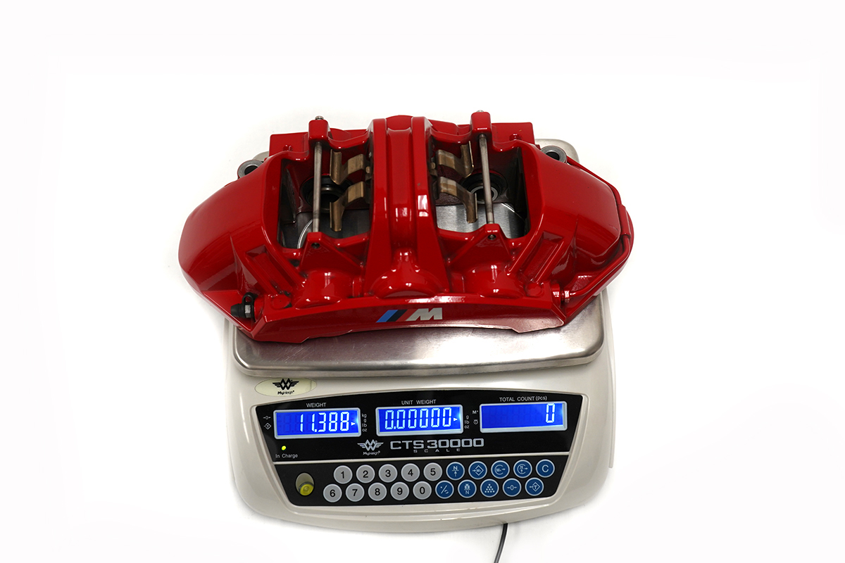 It was a similar theme with BMW's front calipers, which weighed in at 11.38 lbs. without pads: