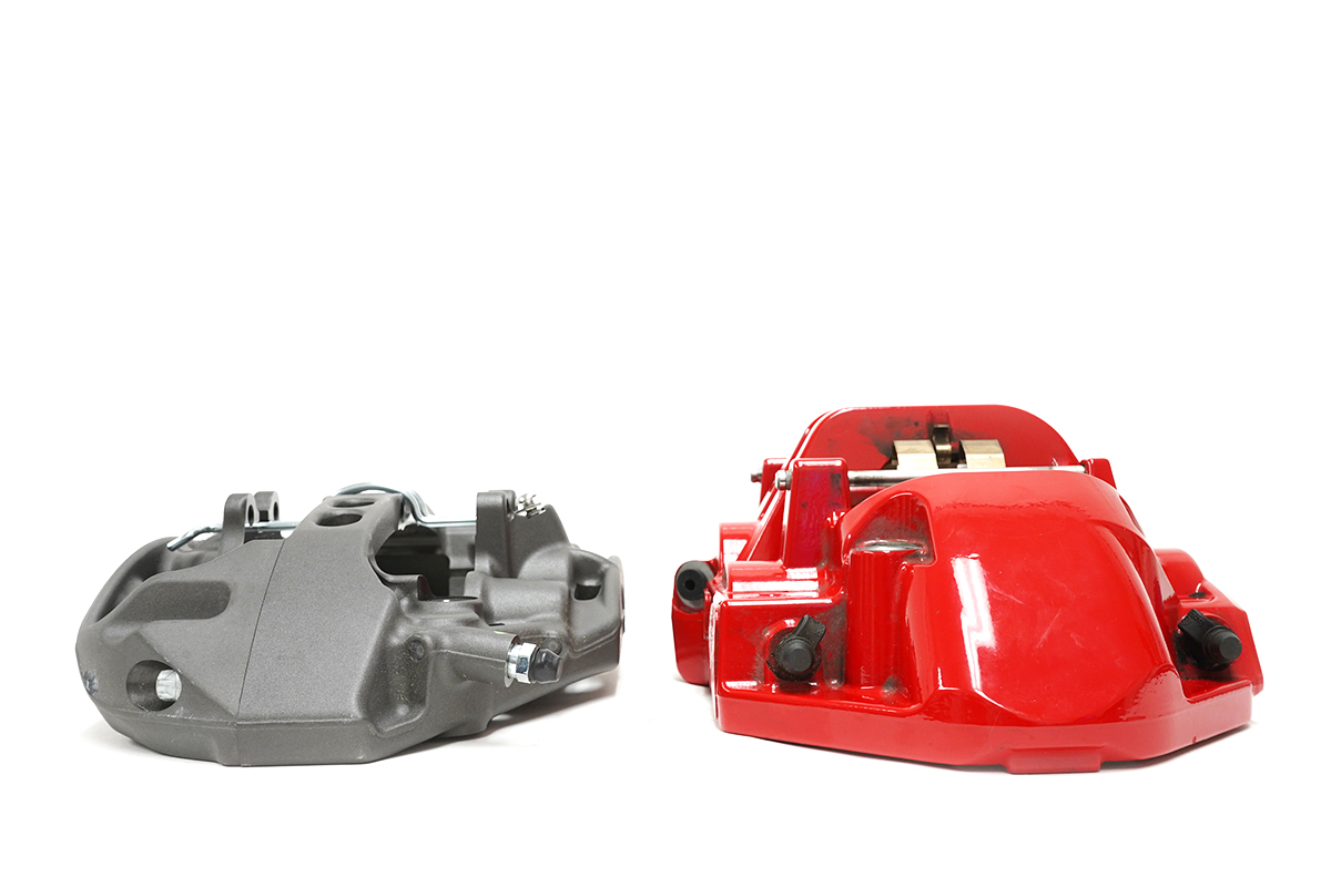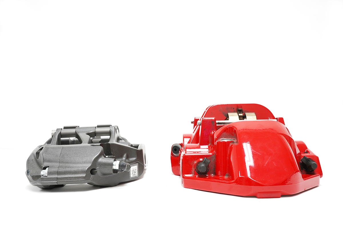 For this application, we offer AP Racing's Radi-CAL Pro5000R calipers in either the CP9660 (18mm thick pads) or wide-format CP9668 with 25mm thick pads. In either case, they are roughly half the weight of the OEM M Compound caliper.
