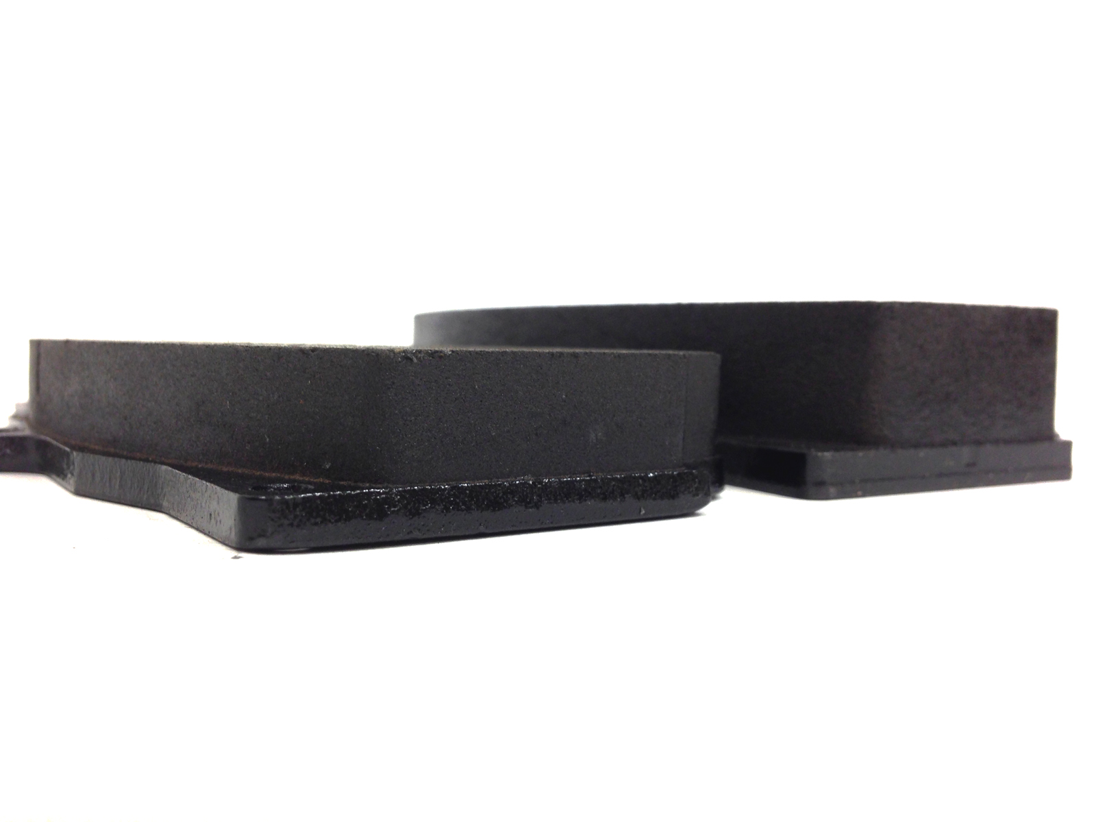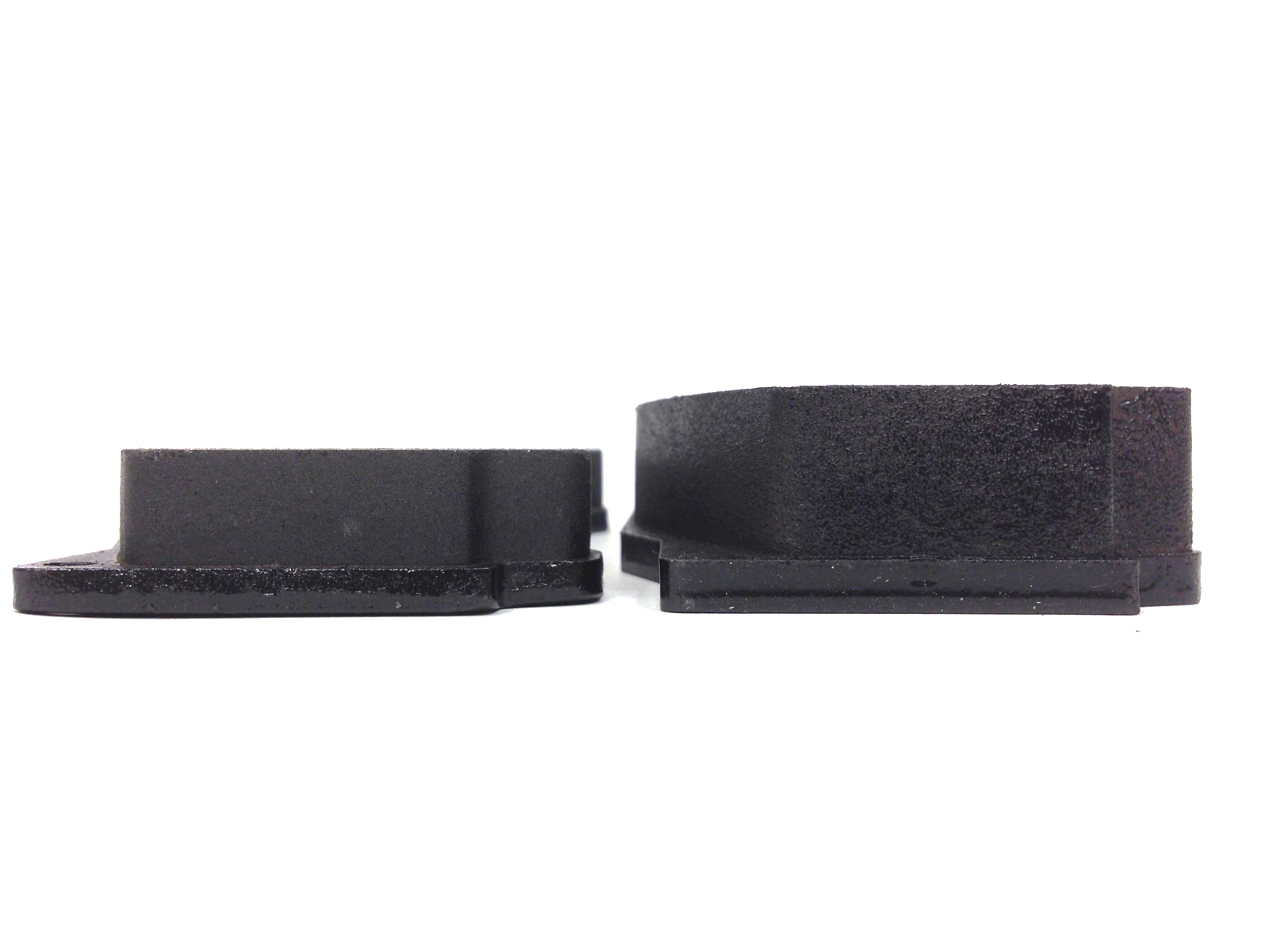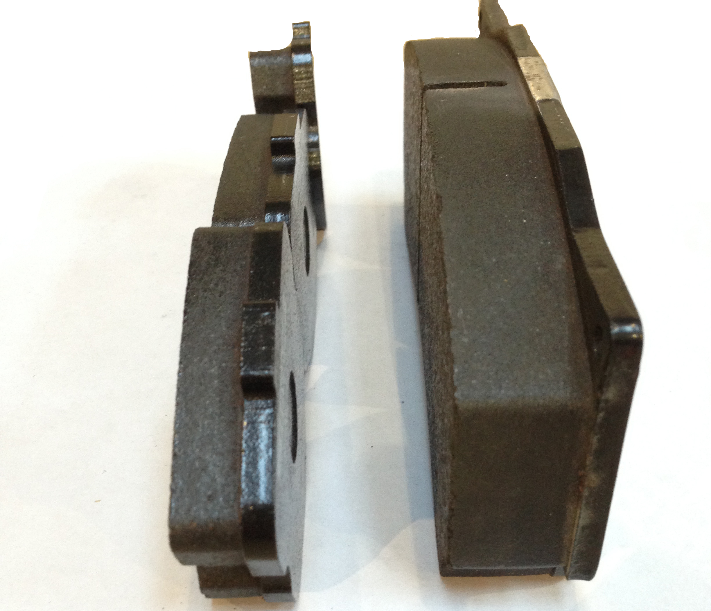 The additional width of the 9668/9 was implemented to allow for a thicker brake pad. The 9668/9 leverages a 25mm thick pad, while the 9660/1 accepts an 18mm thick pad. The pads from both calipers are shown side-by-side in the images below: