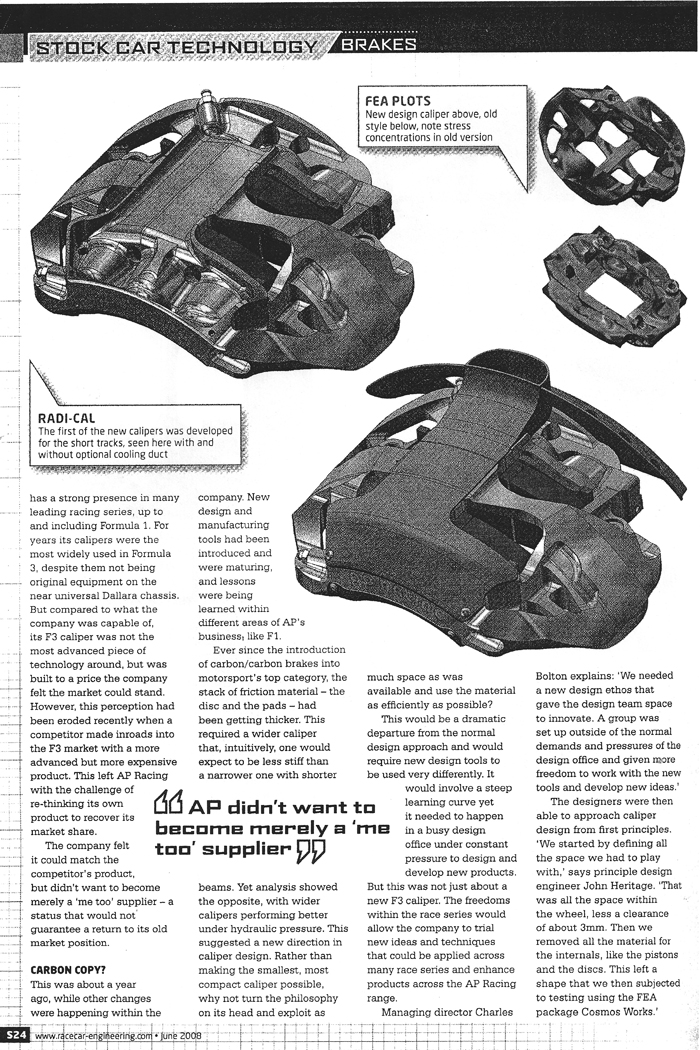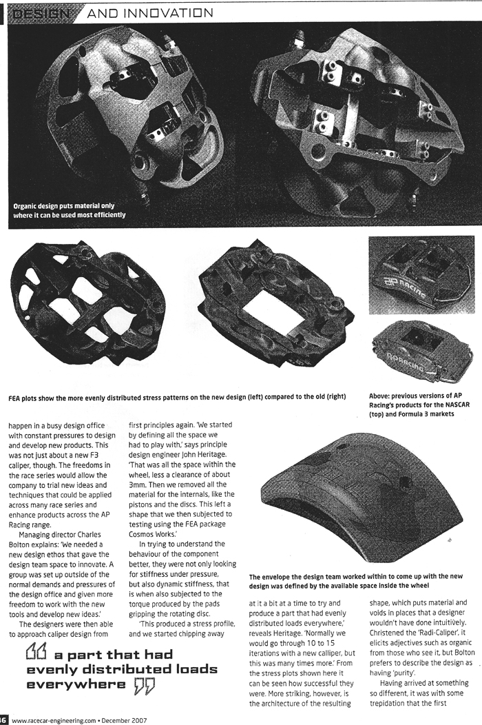 calipers under race conditions. They then threw away the caliper design