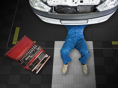 Versodeck is also designed to be anti-fatigue, offering an imperceptible amount of give that coddles your feet when standing for long hours. That makes Versodeck perfect for long wrenching sessions under a lift, in front of a product assembly area, or as a base for your squat workouts. Owners also report that the tiles are significantly more comfortable on the feet vs. concrete or similar products in extremely hot or cold conditions. In short, your dogs will thank you!