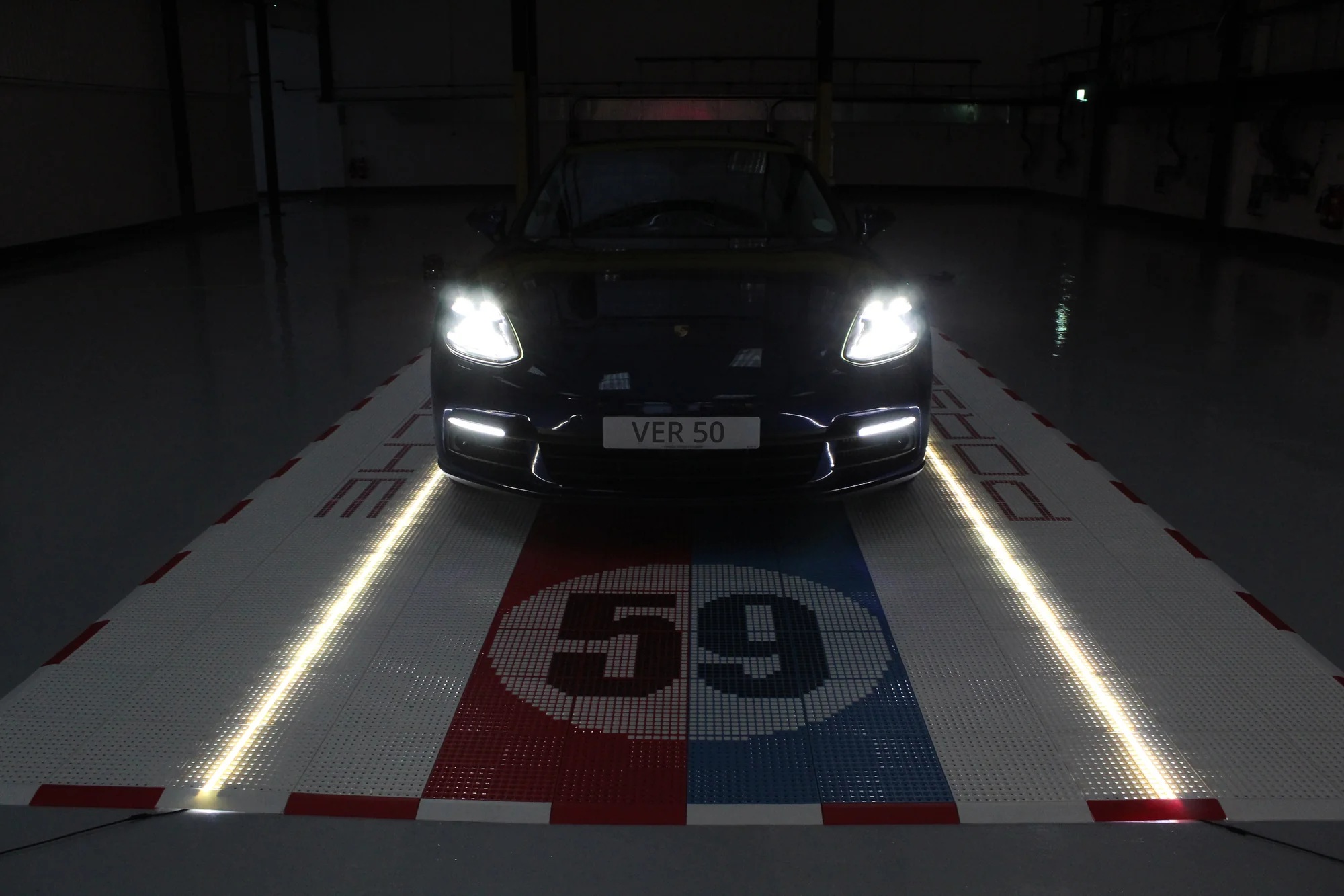 Versodeck offers the opportunity to extend your creativity, with the only limitation being your imagination. If you can see an image in your mind, you can now bring it to life permanently on any patch of level ground. With a huge array of standard colored tiles and mosaics, the ability to create your own custom-colored tiles, LED lighting options, and specialized features geared specifically towards automotive enthusiasts, Versodeck allows you to create the ultimate personalized space for prized vehicles.