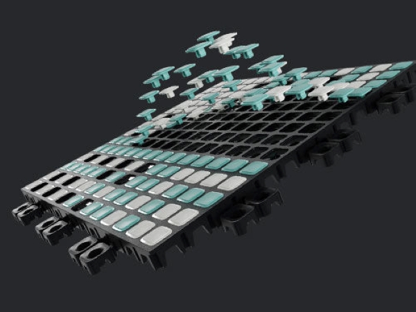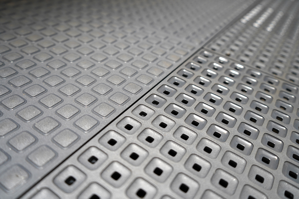 The Versodeck system consists of several different types of tiles and accessories, all painstakingly designed to make your space more functional, comfortable, and attractive. At the core of the Versodeck flooring system are two primary tile types: Taskflor and Upflor. Taskflor is the solid variant, while light and liquid can pass through small 4mm holes in Upflor. Upflor is also the foundation for creating mosaic artwork on your floor. These two types of tile are identical in dimension and can be intermingled to create the floor you've always envisioned. Let's look at what makes this tile system so special.
