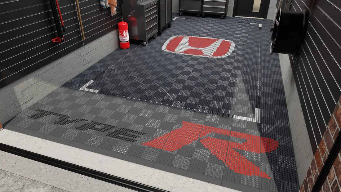 Okay, so we now know it looks really cool and you can go nuts creating some really badass designs with it. One important question still remains however, how functional is it? The great news is that Versodeck is every bit as functional as it is attractive, which is what really drew our team of hardcore enthusiasts to this product. At the root of Versodeck's patented design is a specially developed polymer that is chemically resistant to most substances, which means it can take a severe beating in a garage environment. You can spill engine oil, coolant, brake fluid, or fuel on it, and it won’t stain or discolor (here's looking at you, air-cooled Porsche owners). When it does get some dirt on it, vacuum it, clean it with soap, water, and a spray mop, or you can even pressure wash it. It’s UV resistant, so the edge of the floor near your garage door won’t fade, it won’t lift or warp in direct sunlight, nor will it become brittle in the cold. Versodeck is even fire resistant, making it perfect for hot under-car work around volatile liquids. Your tires can drag gravel from your driveway across it and it won’t get shredded. Winter road salt can drip all over it as your car thaws in your garage, and the tiles won’t disintegrate .