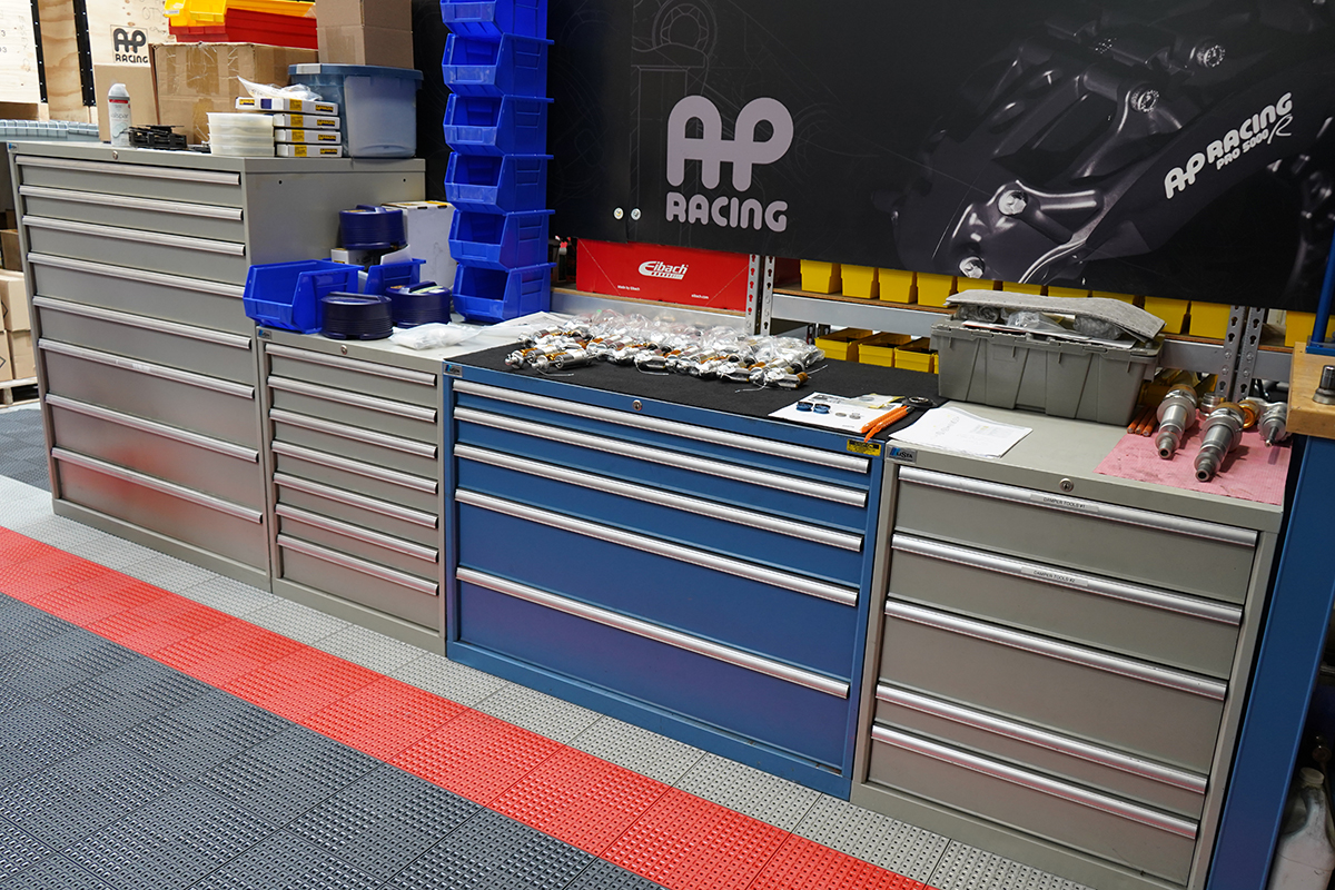 Obviously, you’re now wondering if it can handle the load of a floor jack and jack stands…of course it can! How is this possible? The patented support posts on the bottom of these tiles were developed using Finite Element Analysis, with the goal of producing the greatest load capacity possible. They evenly distribute the load throughout the entire tile, enabling it to support up to 30,000 lbs. across its surface area, which is about what three elephants weigh! Here at Essex, we’ve had our heavy tool chests, work stations, and brake disc assembly tables all sitting on Versodeck, and the tiles aren’t showing any signs of stress or deformation.