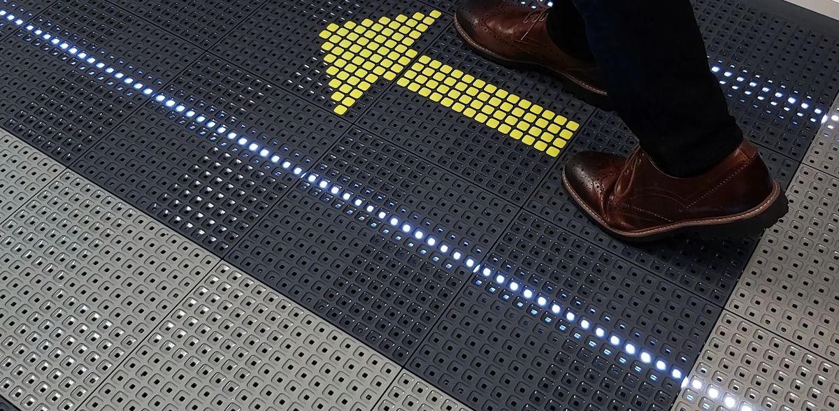 Conversely, Upflor (right) is the choice for areas of your floor where you want to create custom mosaic artwork, allow liquid to pass through, or install some killer underfloor lighting!