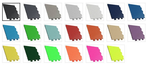 Both Taskflor and Upflor are available in approximately 20 colors each, and they can be mixed and matched to form the foundation of your floor design. The standard color palette offers ample options, ranging from classic neutrals to wild fluorescents. You can think of these as the foundational undertone for your creative canvas. If for some reason there's a non-standard color you really want but don't see below, no sweat...Versodeck can create custom colors just for you!